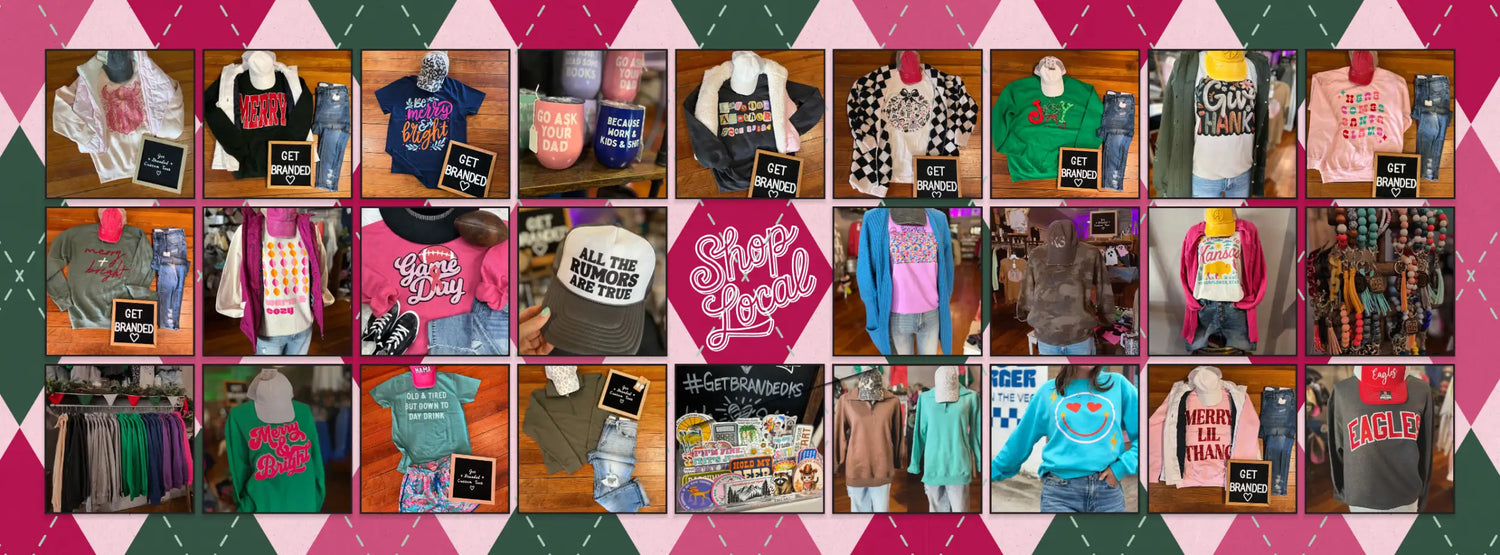 Get Branded is a family owned and operated small business located at 915 Main n in Winfield, KS.We pride ourselves on quality of work and professionalism, offering tons of on trend graphic tees, as well as custom orders! Give us a call to see what we can do for you!