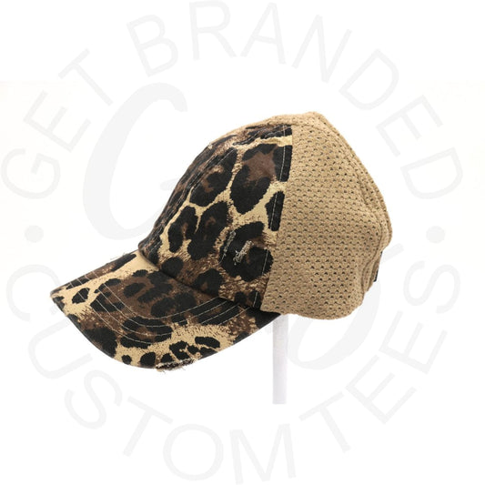 Leopard Distressed Stretch Mesh High Pony CC Beanie