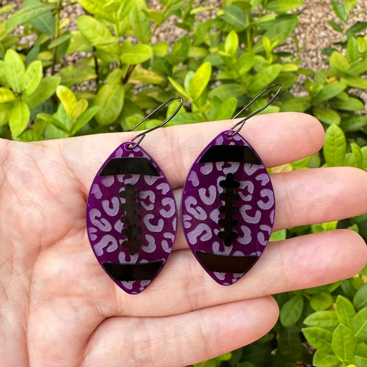 Purple Leopard Football Earrings, Sports Earrings, Game Day